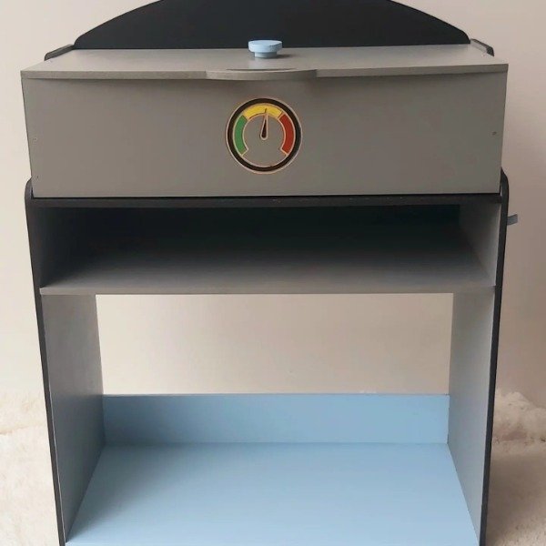 Mide 84cm de alto, 62cm de ancho y 32cm de profundidad.